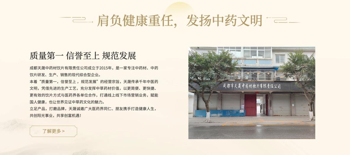 在浩渺的中华医药宝库中,匠草纲目以其深厚的底蕴和前瞻的视野,正引领着中药饮片的新潮流。作为成都市天晟中药材饮片有限责任公司旗下的自营品牌,匠草纲目自2015年成立以来,始终坚守“质量第一,信誉至上,规范发展”的经营理念,专注于中药材、中药饮片的研发、生产与销售,以卓越的品质和创新的科技,赋能国人健康,展现中草药文化的魅力。