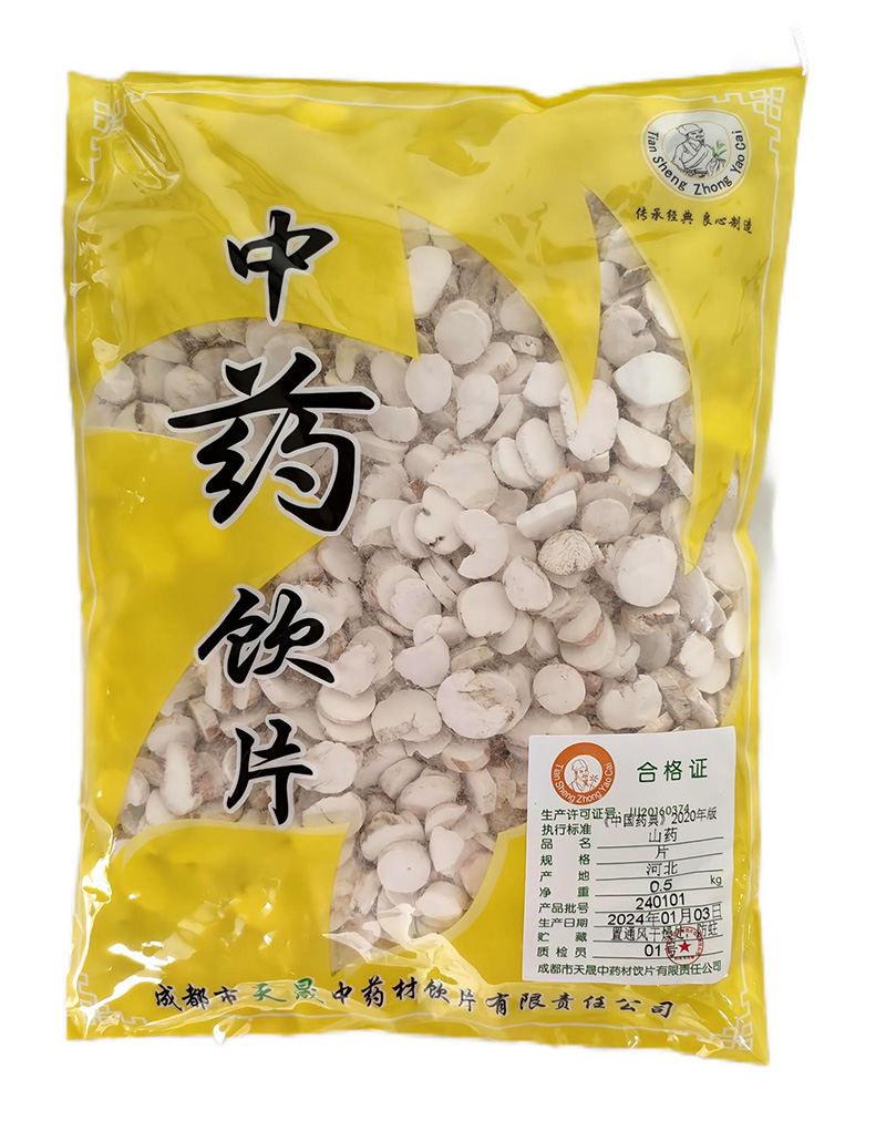 本品为类圆形、椭圆形或不规则的厚片。表面类白色或淡黄白色,质脆,易折断,切面类白色,富粉性。气微,味淡、微酸,嚼之发黏。
